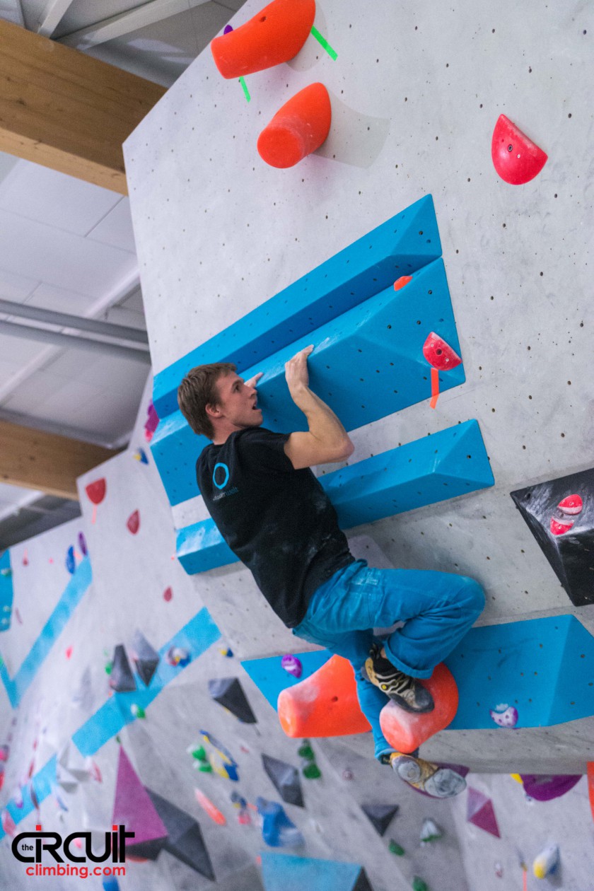 Die Uhr tickt und die Saison beginnt. Das ganze Team ist jeden Mittwoch im Vollgas-Modus für die Vorbereitung auf die kommenden Wettkämpfe. Im Wechsel zwischen den Münchner Boulderwelten lassen wir nicht nur den Bizeps spielen, sondern auch unser Köpfchen. Die eine Woche wird in der Trainingswelt jede kleinste Muskelfaser und jede Muskelkette auftrainiert und in einen neuen Fitnesszustand versetzt. Die nächste Woche bekommen wir vom Boulderwelt Schrauberteam extra Wettkampfboulder auf Worldcup Niveau geschraubt, so auch letzte Woche. Schnell aufgewärmt und schon wurden die neuen Boulder ausführlich unter die Lupe genommen. Vier Herren- und vier Damen-Boulder von steil bis plattig, von knifflig bis pressig, von lang bis kurz und von Leisten über Volumen war alles mit dabei! Sehr abwechslungsreiche Boulder, in denen jeder von uns was zu tun hatte. In kleinen Gruppen haben wir gezielt mit Onsight- und Flashversuchen uns und unseren momentanen Leistungsstand erprobt. Obwohl die Boulder zunächst echt schwer und unantastbar aussahen, sind doch viele Boulder geflutscht. Entweder nach oben oder nach unten 😉